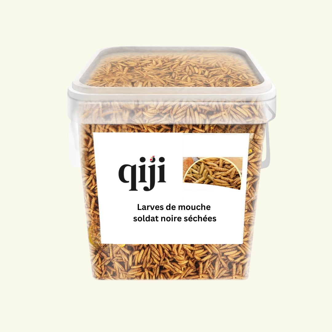Un petit festin qui fait frétiller tout le jardin ! Les larves séchées de Mouche Soldat Noire sont des petites friandises parfaites pour les hérissons, oiseaux, reptiles ou poissons qui passent par chez vous. Riches en acides aminés, Oméga 3 & 6 et calcium, elles soutiennent la ponte, réduisent le stress et renforcent l’immunité. Un snack naturel, plein de bonnes choses, à saupoudrer comme une pincée de bonheur sur leur quotidien.